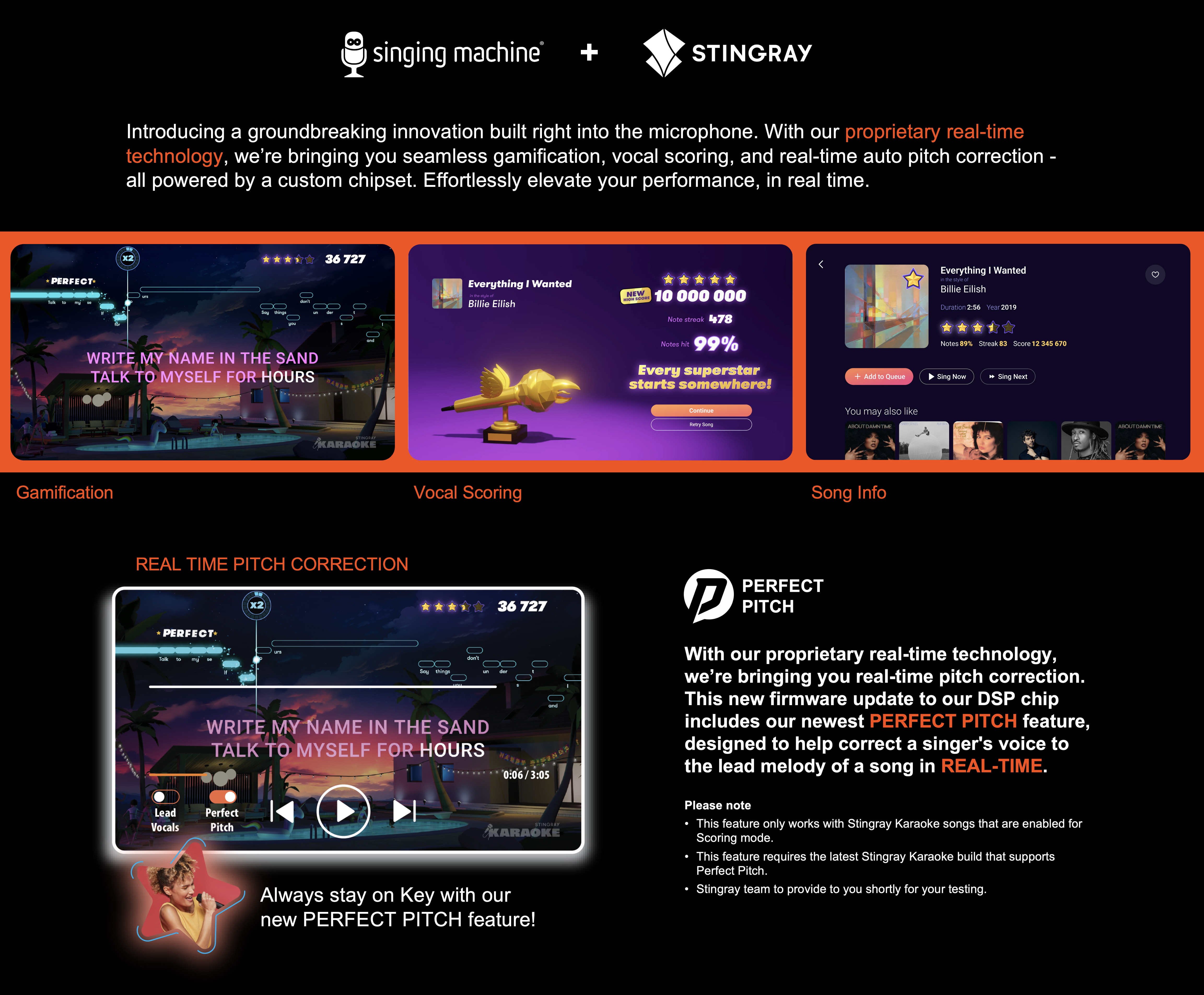 “Stingray is committed to pushing the boundaries of in-car entertainment. The integration of Singing Machine’s leading microphone technology into our portfolio allows us to deliver an unparalleled, seamless experience for music lovers on the road,” said Jim Riley, President of US Division at Stingray. “Our new scoring mode, combined with real-time pitch correction, makes every karaoke session a truly immersive and rewarding experience. We’re excited to set a new benchmark for road trip fun and musical engagement.”